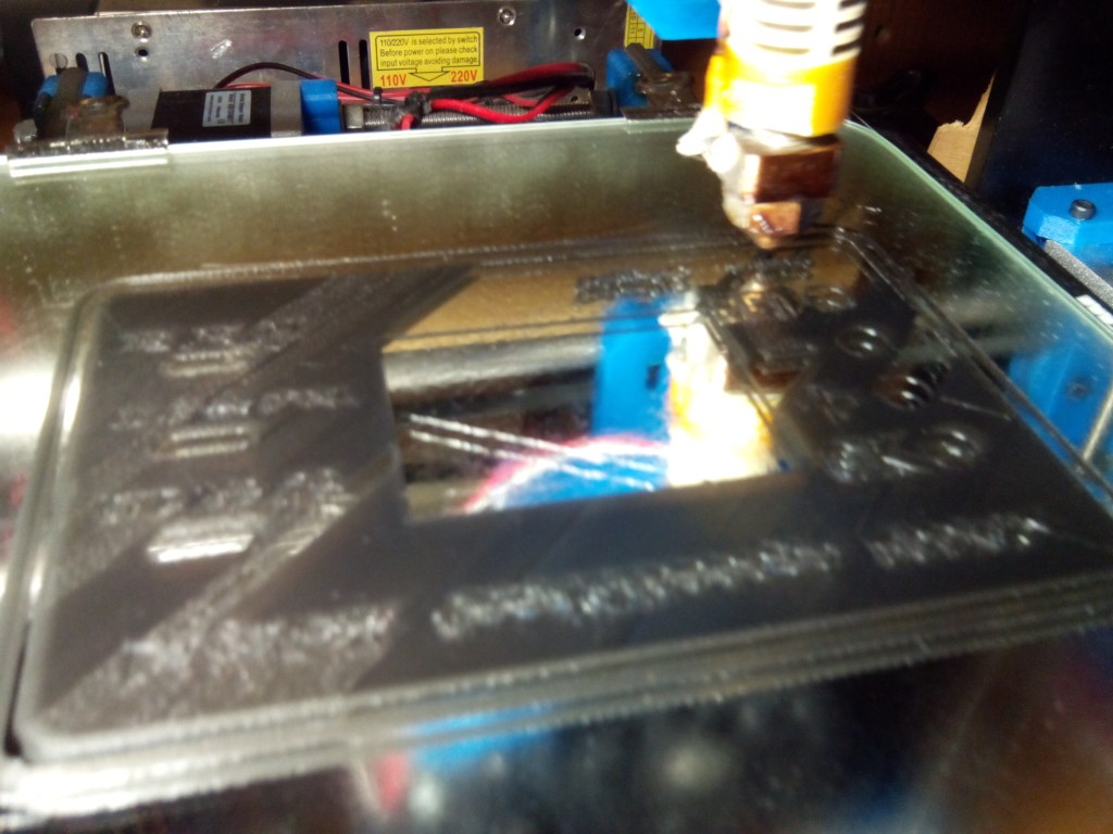 Las piezas se imprimieron con mi propia impresora 3D, se aprecia un par de fallos en la primera capa, pero en general el resultado es aceptable. El vaciado de las letras salio bien salvo en la palabra “reset” que coincide con uno de los defectos de la primera capa.
