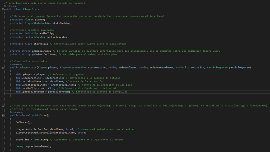Al igual que el jugador, los enemigos tendrán su maquina de estados. Aunque esta puede ser sustituida por un behaviour tree. Para este proyecto he elegido la maquina de estados, pero con la asignatura de IA podré mejorar, y simplificar, mucho el comportamiento de los enemigos.